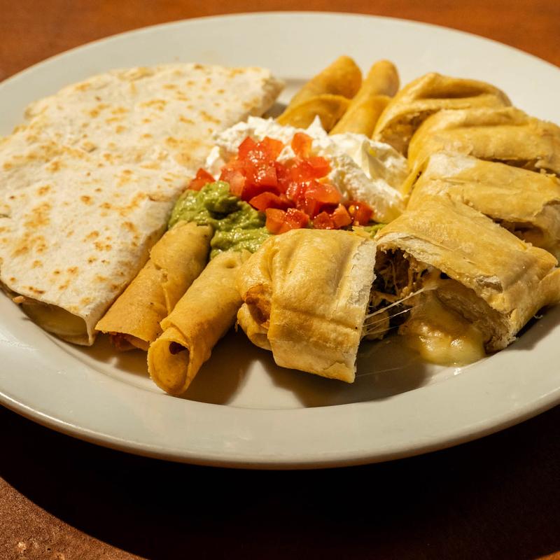 chicken or beef | combination of taquitos, chingalingas, & quesadillas served with guacamole & sour cream