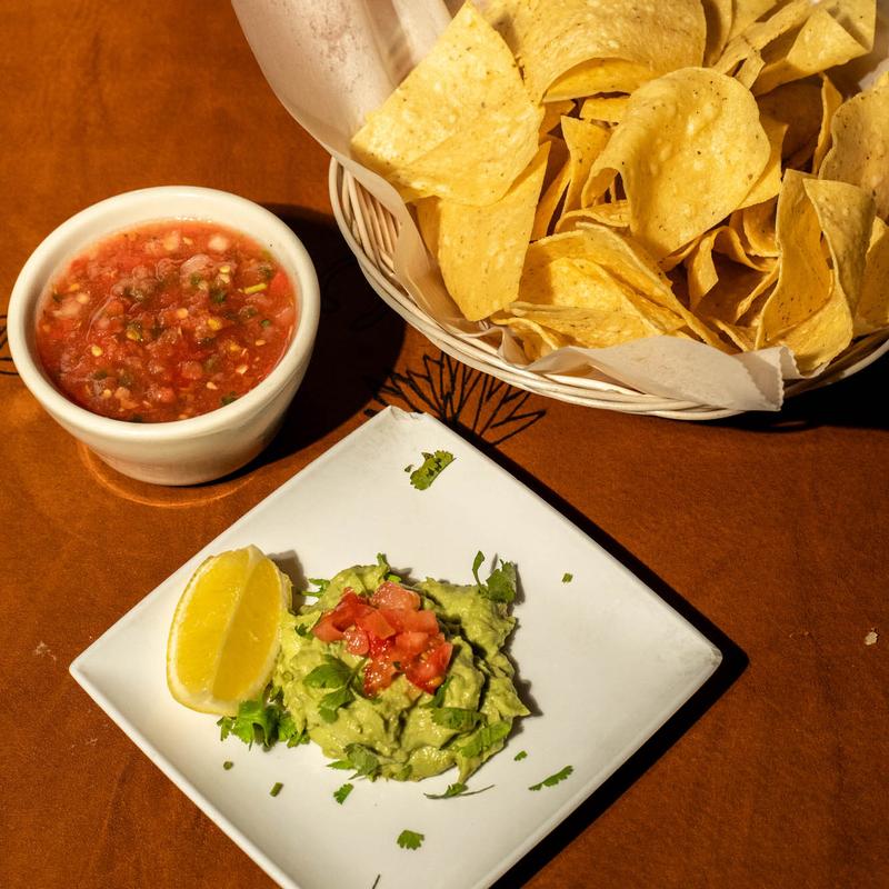 Crisp corn tortilla chips topped with chile verde, beans, cheese, jalapenos, onions, tomatoes, guacamole & sour cream