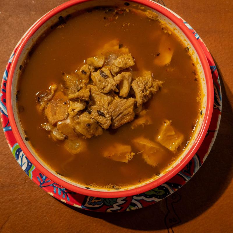 A mixture of shredded beef with scrambled eggs, bell peppers, onions, and tomatoes. Served with rice, beans, and tortillas.